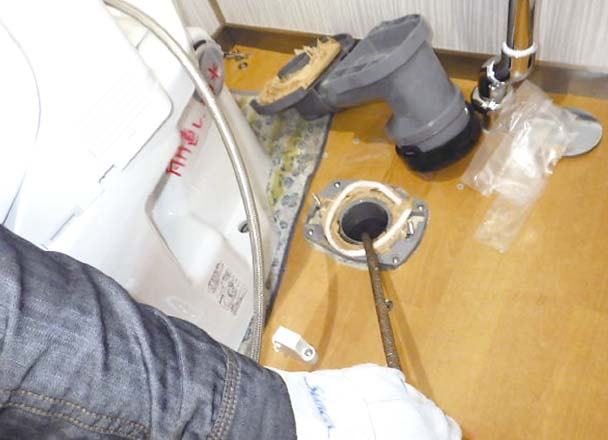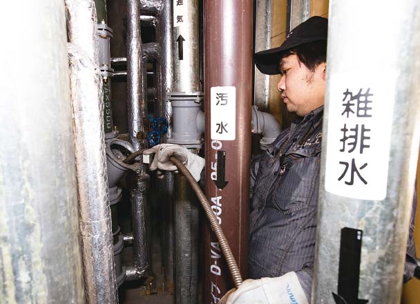 特殊なマシンを使って排水管の詰りを解決。